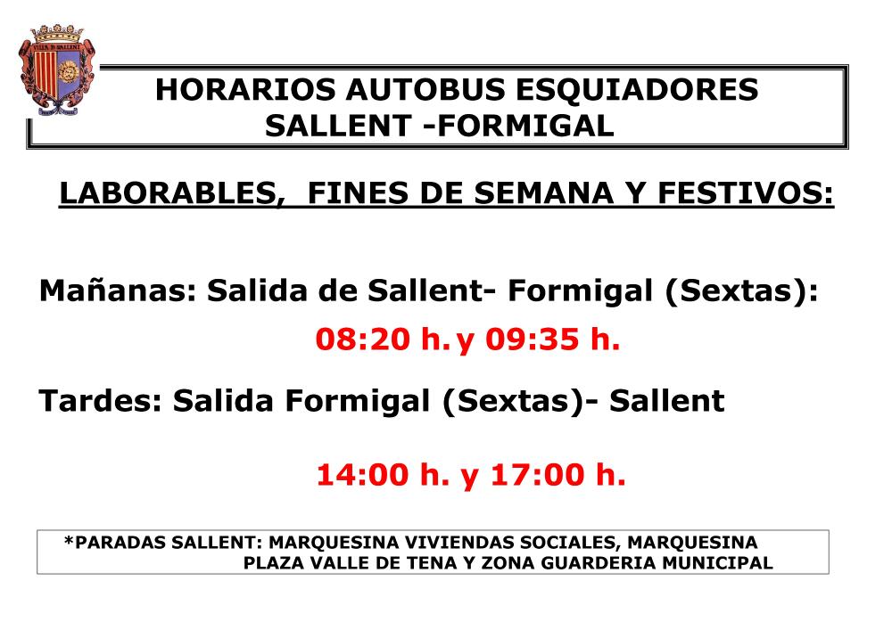HORARIO AUTOBÚS ESQUIADORES SALLENT-FORMIGAL