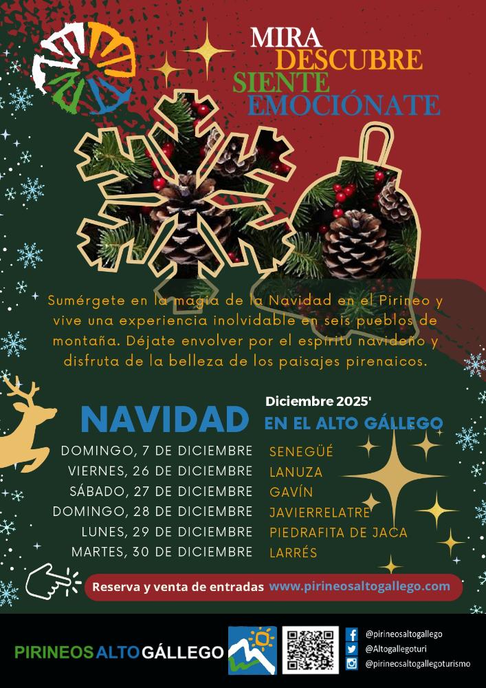 Porgrama de visitas guiadas navideñas organizadas por la comarca Alto Gállego. Durante el mes de diciembre, se realizarán 6 visitas a distintas localidades de la comerca. Más información y compra de entradas en la web de la Comarca Alto Gállego.