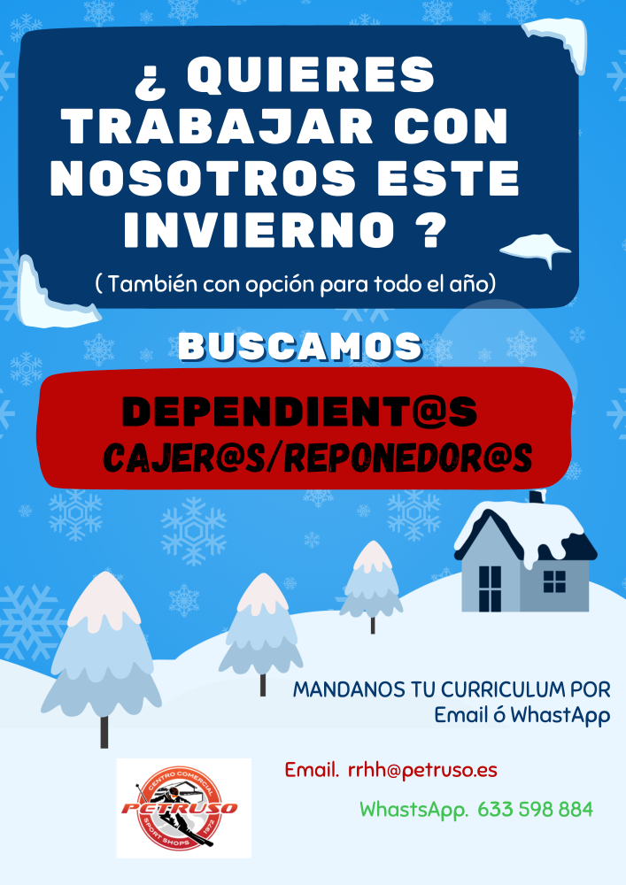 Aquellas personas que estén interesadas pueden enviar un Whatsapp al 633 598 884 o un email a rrhh@petruso.es